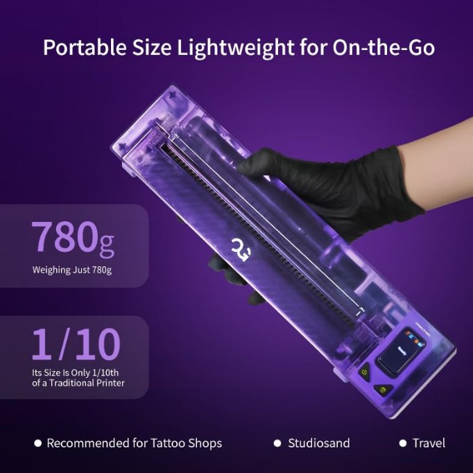 【Impressionante vida útil da bateria】da com uma bateria potente de 2500 mAh, nossa impressora de transferência de tatuagem oferece impressionantes 3-4 horas de operação contínua com uma única carga. Com a capacidade de suportar até 300 gramas por carga, garante um fluxo de trabalho ininterrupto.